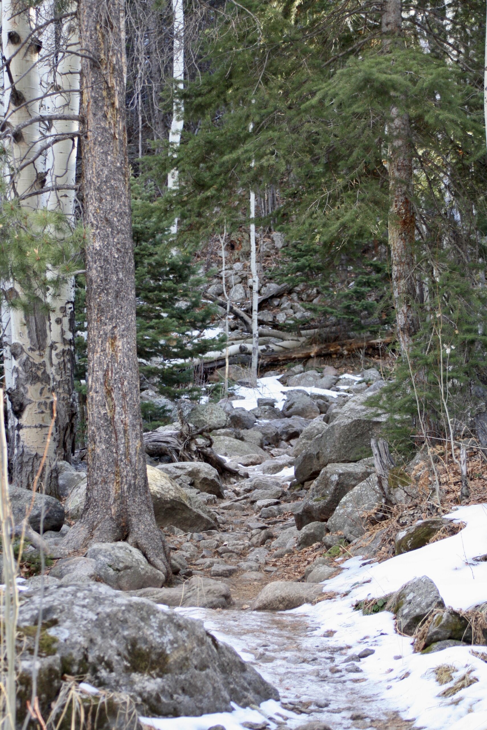 Friday afternoon found me in the Rocky Mountain National Park. Normally I will go up first thing in the morning, but I had a conversation with my spiritual director scheduled for 10:00. Those conversations are great because we don’t know where we are going with them, and we don’t need to know. We just have to be on the way. But it kept me from getting underway until after lunch. I thought I would try a trail at lower altitude with the idea that it might have less ice and less vertical fluctuation.